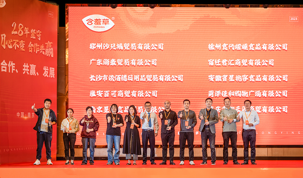 在本次會議上我們也向部分經(jīng)銷商公司進行了表彰,獎項包括“2023年優(yōu)秀經(jīng)銷商”、“2023年優(yōu)秀合作伙伴”。獲獎經(jīng)銷商代表也就本次獲獎發(fā)表感言,表示將與含羞草食品持續(xù)合作,共贏發(fā)展。我們期待未來能有更多的經(jīng)銷商朋友們與我們攜手同行,再創(chuàng)佳績!